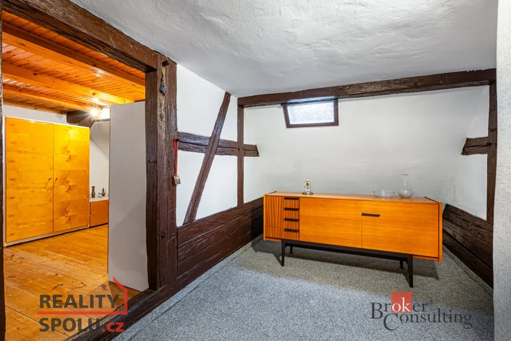 Velkou výhodou je parkování v garáži přímo u domu, nebo na pozemku, dále dílna vhodná pro kutily či podnikání, sklep pro skladování a také prostorná půda s možností dalšího využití (např. půdní vestavba, ateliér nebo další obytné místnosti).