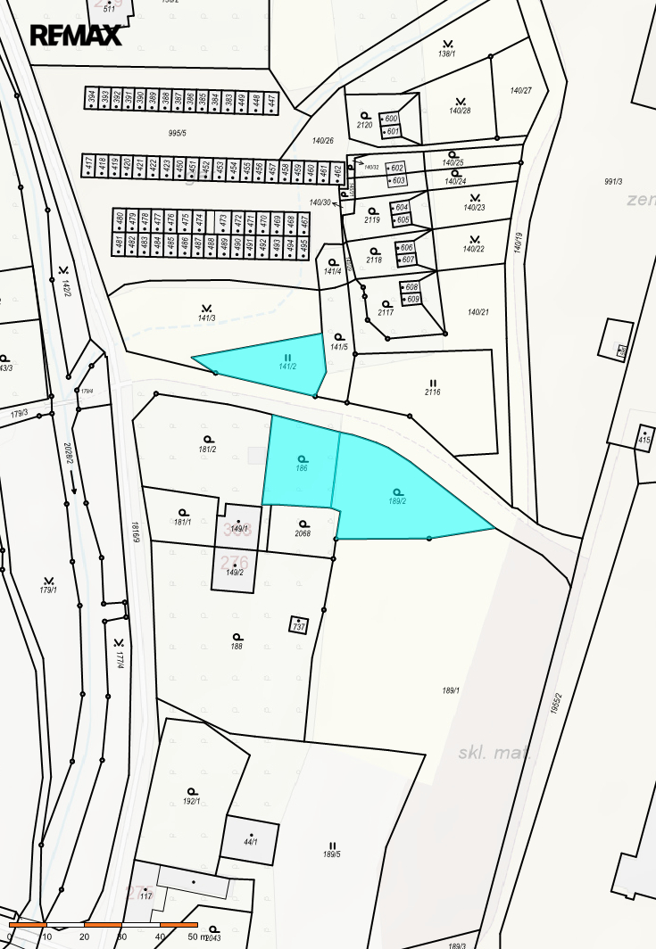 Pozemek parc.č. 141/2 o výměře 335 m2 spadá pod Plochy dopravní infrastruktury - plochy parkovací a odstavné.