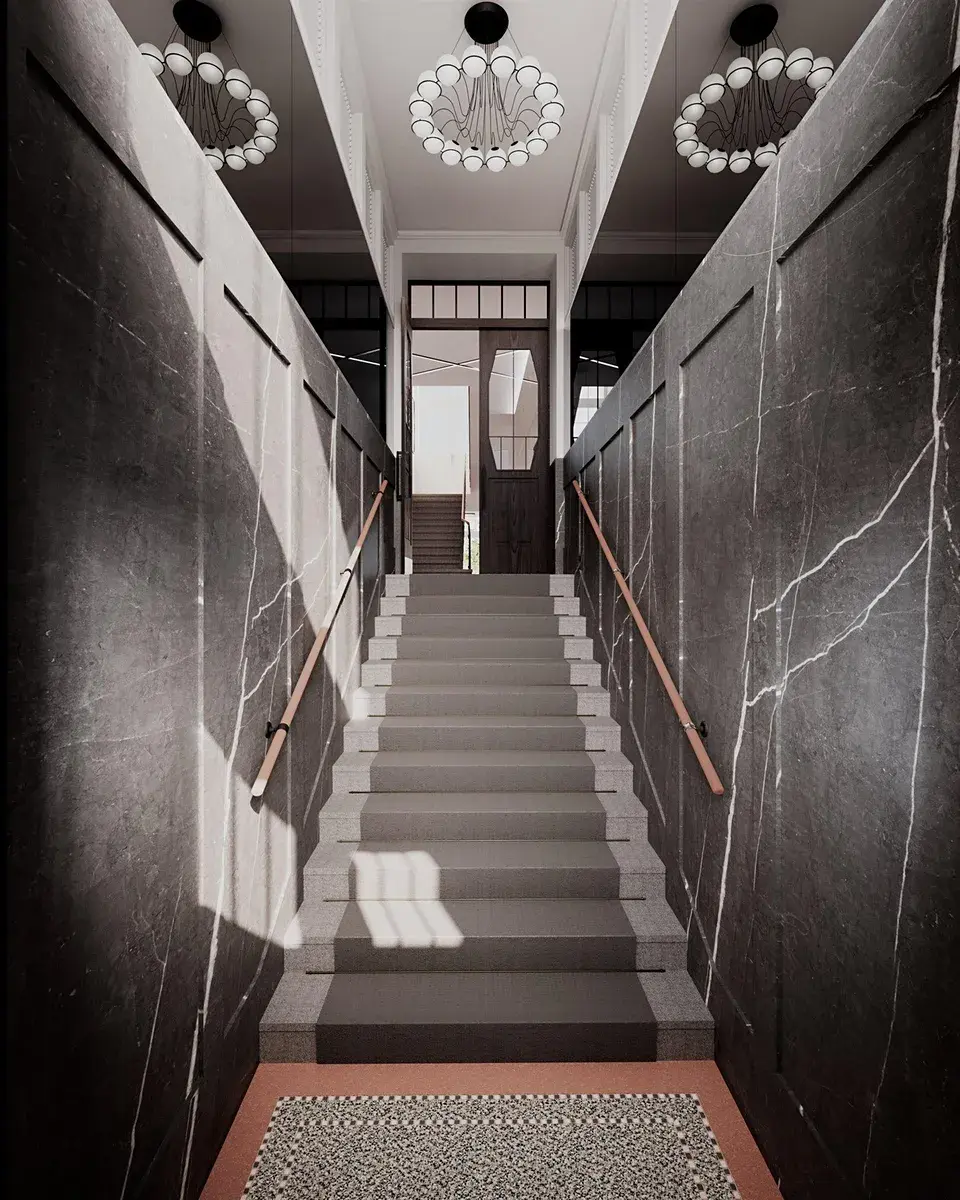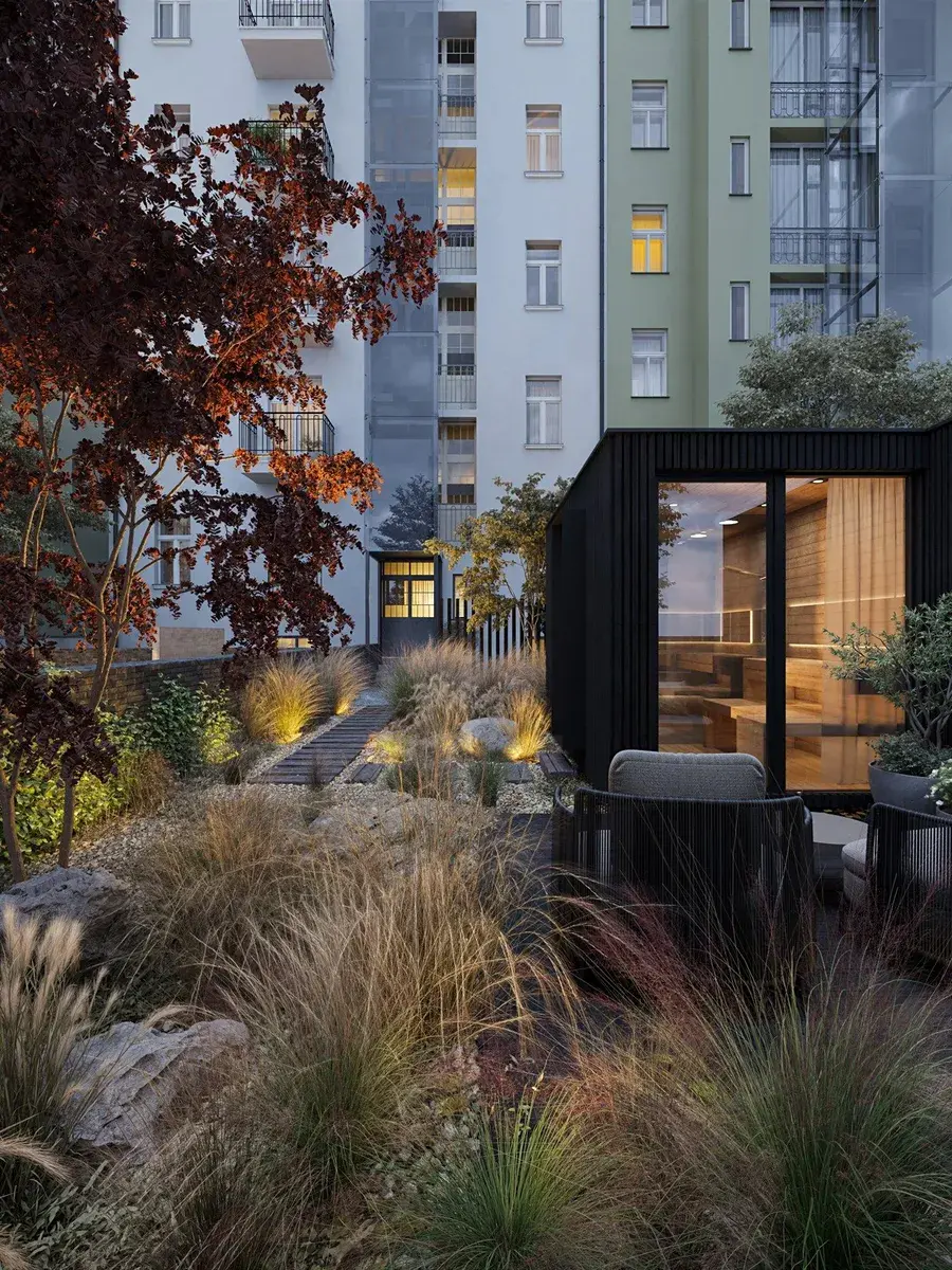 Dům po kompletní rekonstrukci má reprezentativní společné prostory, moderní výtah, repasované kamenné schodiště se zdobným zábradlím a nové technické zázemí. Rezidentům je k dispozici sauna a ve vnitrobloku pak klidné místo k posezení mezi zelení. Dům stojí v tiché části ulice Heřmanova na Letné – v místě, kde se setkává městský život s klidem. Jen pár kroků odtud se otevírá Stromovka i Letenské sady, zatímco v okolí najdete oblíbené kavárny, bistra a designové obchody. V docházkové vzdálenosti je Národní galerie, obchodní centrum Stromovka i veškeré služby pro každodenní život. Na Strossmayerovo náměstí dojdete za pět minut, metro Vltavská je v dosahu osmi minut chůze a do centra Prahy se dostanete MHD během dvanácti. Letná nabízí rovnováhu – městskou energii i prostor pro zklidnění tempa. Heřmanova 24 stojí přesně uprostřed.