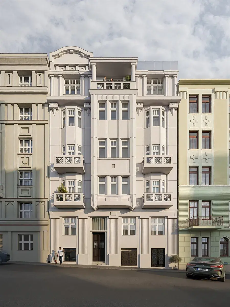 Prostorný a vyváženě řešený byt o dispozici 2+kk a podlahové ploše 46.1 m² je součástí nového rezidenčního projektu Heřmanova 24, který vzniká citlivou rekonstrukcí výjimečného kubistického domu z dvacátých let. Tento architektonický originál s charakterem Letné si zachovává svůj výrazný styl, zatímco interiéry získávají novou úroveň komfortu i řemeslného zpracování. Projekt spojuje silnou identitu domu s nároky současného bydlení a nabízí limitovaný počet bytů s důrazem na detail, materiály a nadčasovost. Dokončení je plánováno na první čtvrtletí 2027.