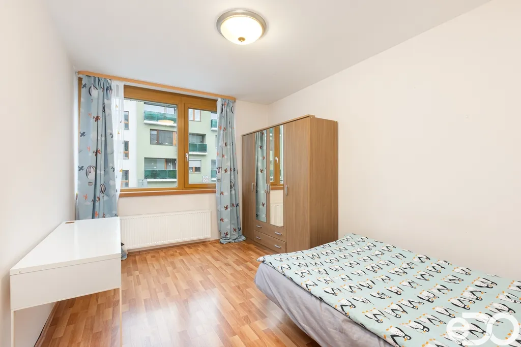 Dispozice bytu je promyšlená a funkční. Obývací pokoj s kuchyňským koutem je orientovaný na východ a nabízí příjemné ranní světlo, zatímco ložnice a dětský pokoj směřují na západ, do klidné ulice. Byt tak působí vzdušně a přirozeně prosvětleně po celý den. K bytu náleží balkon s výhledem do okolní rezidenční zástavby a také soukromá zahrádka, která poskytuje ideální prostor pro odpočinek, dětské hry nebo posezení s přáteli. Praktickým bonusem je sklepní kóje a garážové stání přímo v domě.