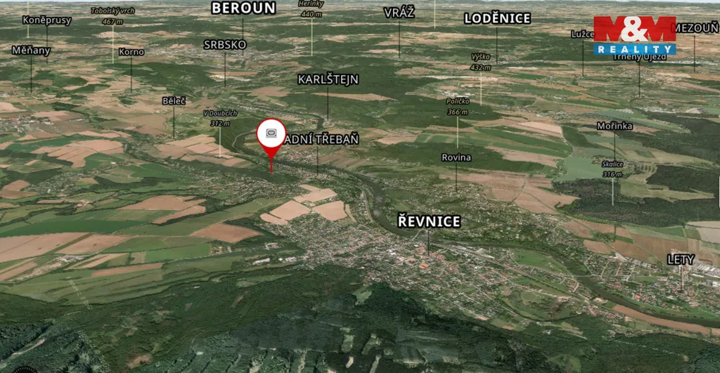 Jedinečná investiční příležitost – ovocný sad v Zadní Třebani s výhledem na Berounku.