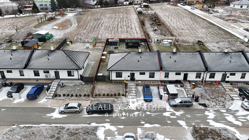 Jedná se o krajní řadový dům zkolaudovaný v roce 2023. Majitel byl osobně přítomen již od počátku výstavby, a mohl tak dohlížet na kvalitu provedení i výběr použitých materiálů. Dům je postaven z cihlových tvárnic s nadstandardním zateplením, což zajišťuje velmi nízké provozní náklady – přibližně 4 500 Kč měsíčně za vytápění včetně ohřevu vody. Okna jsou osazena izolačními trojskly.