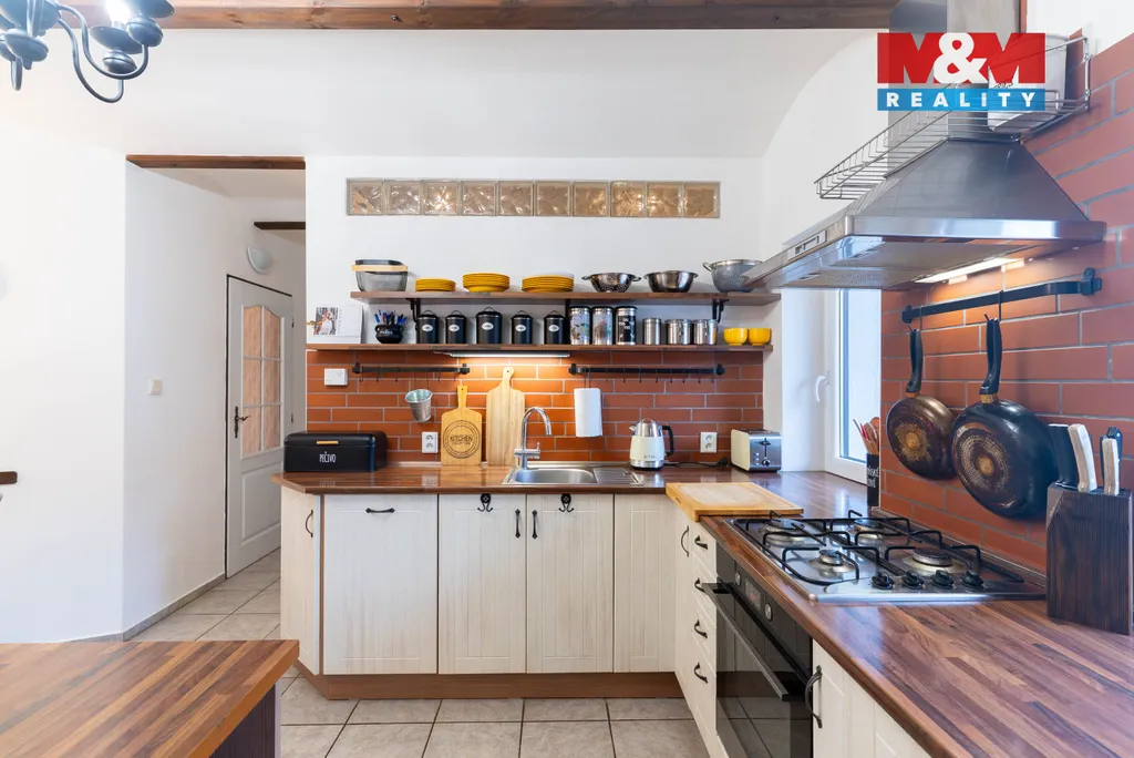 Dům je částečně podsklepený a nabízí také garáž pro dva automobily, sklad a dílnu. Část nemovitosti byla přistavěna přibližně před 15 lety, střecha prošla rekonstrukcí zhruba před 5 lety. Vytápění zajišťuje plynový kotel v kombinaci s elektrickými přímotopy a klimatizací, ohřev vody bojler.