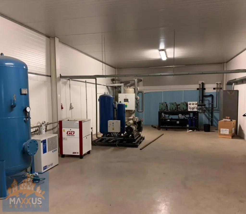 Součástí haly je plně vybavená strojovna se třemi kompresory pro distribuci chladicího média a zařízením pro vysoušení vzduchu (např. pro připojení automatizované linky). Technologie zajišťují stabilní a optimální skladovací podmínky.