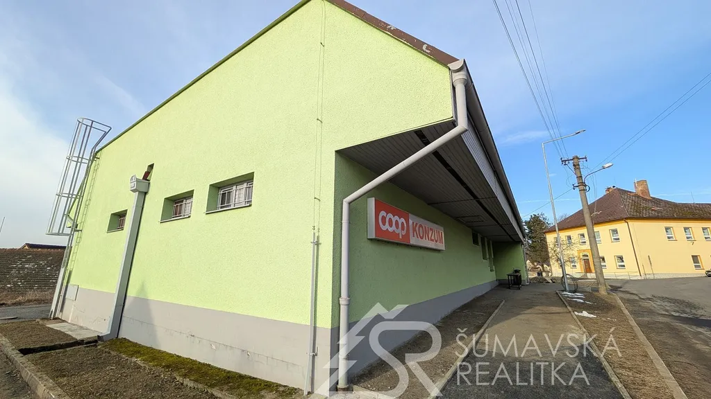 Popis nemovitosti: Jedná se o stavbu provedenou zděnou technologií, není podsklepená a má jedno nadzemní podlaží. Dům má sedlovou i pultovou střechu s betonovou krytinou. V přízemí je prodejna potravin o celkové podlahové ploše 250 m² se sklady, mrazákem, kanceláří a sociálním zařízením pro prodavače. Restaurace s výčepem, sousedním malým sálem, kuchyní, sklady, WC ženy a muži, kancelář vedoucího - vše o celkové podlahové ploše 244 m². Podlahová plocha obou budov je 494 m². Svislá nosná konstrukce je zděná o šířce 48 cm, stropy rovné, krov vazníkový sedlový, krytina tradiční betonová, okna dřevěná zdvojená, ocelové výkladce, dveře hladké a kovové. Obě budovy byly postaveny v roce 1990 a jejich údržba je na dobré úrovni.
