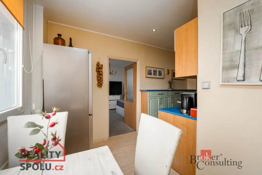 Kuchyně je samostatná, s oknem, které dokonale vpouští přirozené denní světlo a příjemnou atmosféru při každodenním fungování. Z kuchyně je dále vstup do ložnice, která je oddělena od hlavního obytného prostoru a nabízí klidové zázemí pro nerušený odpočinek.