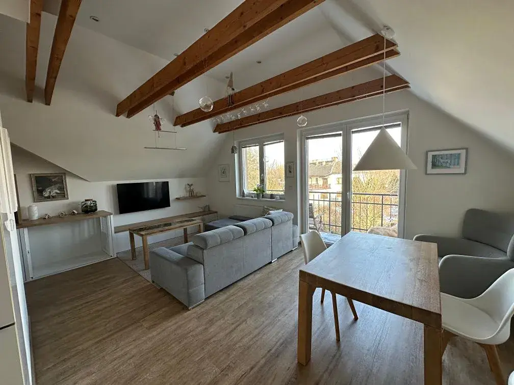 Nabízíme jednotku 3+kk v podkroví. Byt má velmi dobré dispoziční uspořádání. Obývací pokoj je s orientací do zahrady a má velký balkon. Kuchyňský kout je s obývacím pokojem (27,90 m2) propojen příjemně a současně i částečně diskrétně. V části umístěn jídelní kout. Obě ložnice (18,90 m2 a 13,50 m2) jsou samostatně přístupné a větší z nich má svoji vlastní šatnu. WC a koupelna jsou samostatné a přístupné z centrální chodby, ze které je dále přístupná ještě šatna s bojlerem. Podkroví má minimální šikminy díky vikýřům.