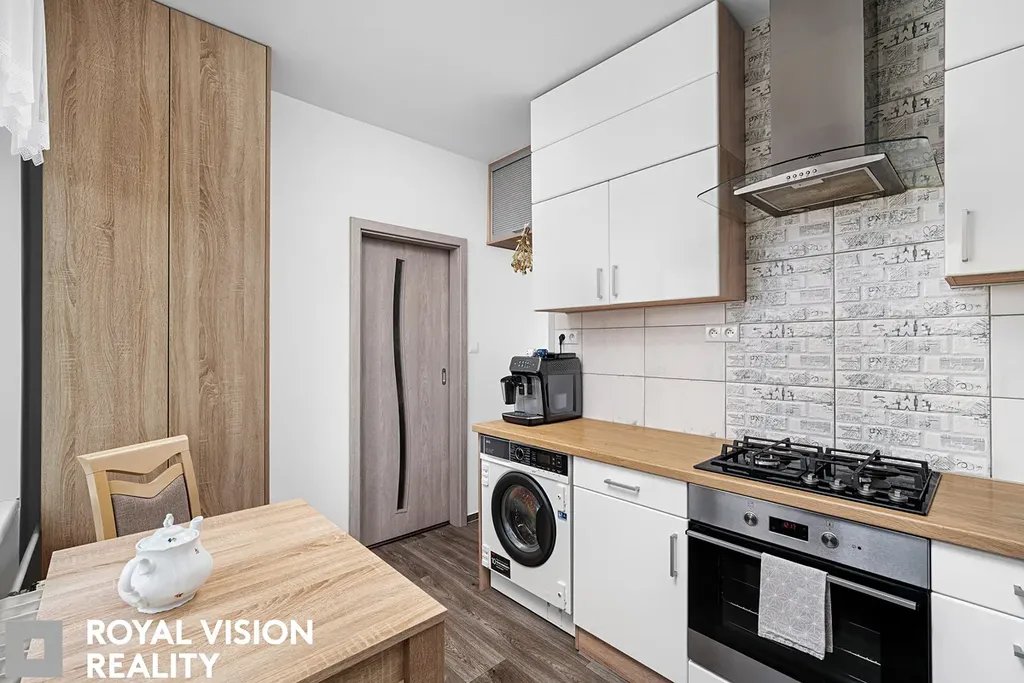 Jednotka prošla celkovou rekonstrukcí interiéru v roce 2017 a je ve velmi dobrém stavu. Kuchyň je kompletně vybavená včetně plynového sporáku a digestoře s odtahem do šachty. Koupelna nabízí prostorný sprchový kout, toaleta je samostatná. Ložnice je prostorná se sníženým parapetem. Pokoje v bytě jsou neprůchozí. Podlahy tvoří lino s původními parketami pod nimi. Okna jsou plastová s dvojsklem, nově byly instalovány předokenní žaluzie (12/2024). Prakticky řešen úložný prostor.