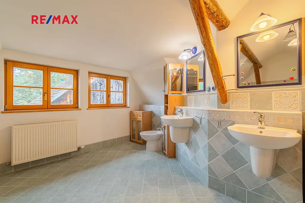 V 2.NP se nachází 4 prostorné pokoje, koupelna s wc a sprchovým koutem, pracovnou a velkou koupelnou s rohovou vanou, přípojkou na pračku, dvojumyvadlem, bidetem a toaletou. V otevřeném prostoru lze vybudovat kuchyňský kout, pro který jsou instalace připraveny.