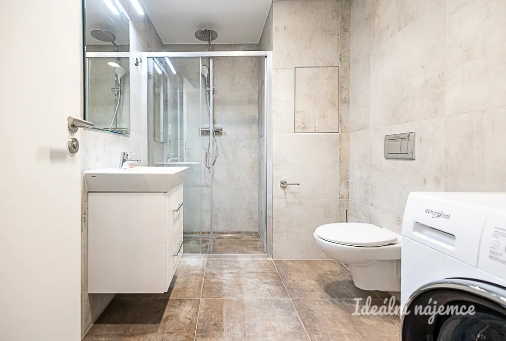 Dispozičně byt nabízí prostornou předsíň i plně vybavenou koupelnu včetně pračky. Hlavní dominantou je obývací pokoj s kuchyňskou linkou ve které jsou vestavěné všechny potřebné spotřebiče včetně myčky. Obývací pokoj je spojen s prostorným balkonem, který nabízí nádherný výhled do vnitrobloku. Druhou místností je pak pokoj s vestavěnou skříní, taktéž s výhledem do vnitrobloku. Výhodou také je, že v bytě budete žít jako první.