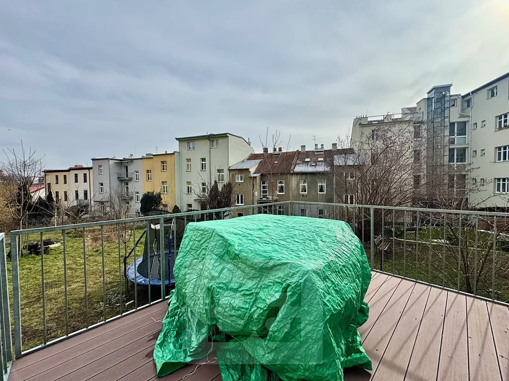Velkým benefitem bytu je terasa orientovaná do zahrady, která nabízí klidné posezení mimo ruch ulice.