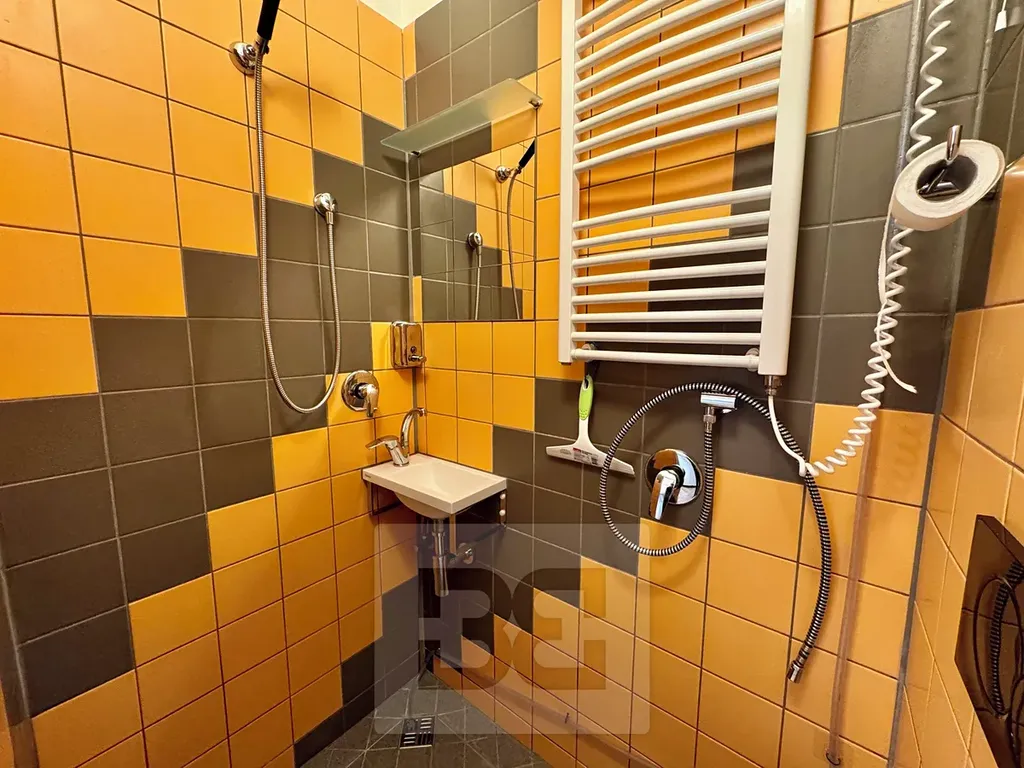 Koupelna je se sprchovým koutem, WC a bojlerem – je spíše menší, nicméně funkčně řešená.