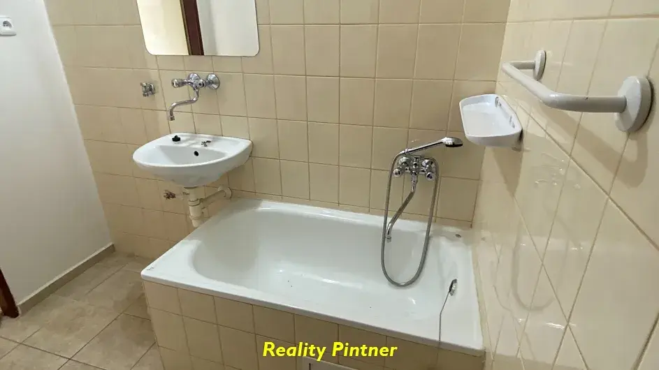 Má zděnou, revitalizovanou koupelnu s malou vanou a s WC. Lodžie je zasklená s dlažbou a s kobercem. Byt bude vystěhovaný. V kuchyni je spížní skříň, elektrický sporák s digestoří.
