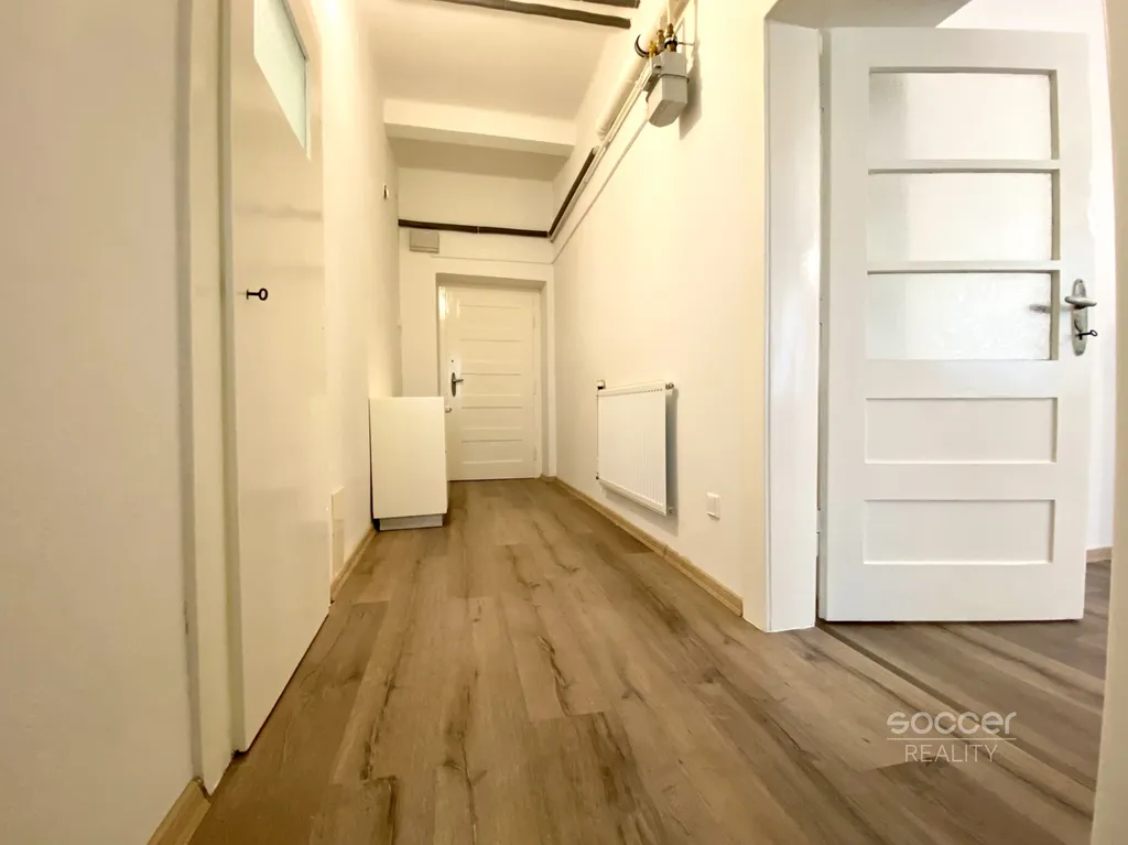 Příjemný byt s jedinečnou atmosférou a nádechem historie vám poskytne útulný domov s dostatkem soukromí. K dispozici máte velký pokoj (29m2), který vybízí k vytvoření obývacího pokoje i s ložnicovou částí, dále zde najdete útulnou samostatnou kuchyň se základními spotřebiči a atypickým půdorysem, nově modernizovanou koupelnu včetně toalety, vstupní chodbu s vestavěnou skříní a ještě jednu chodbu, která spojuje pokoje a současně umožňuje využití jako například další úložný prostor.