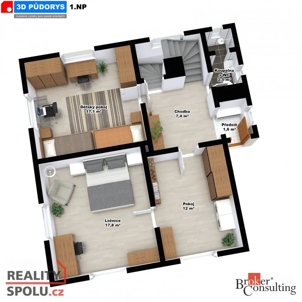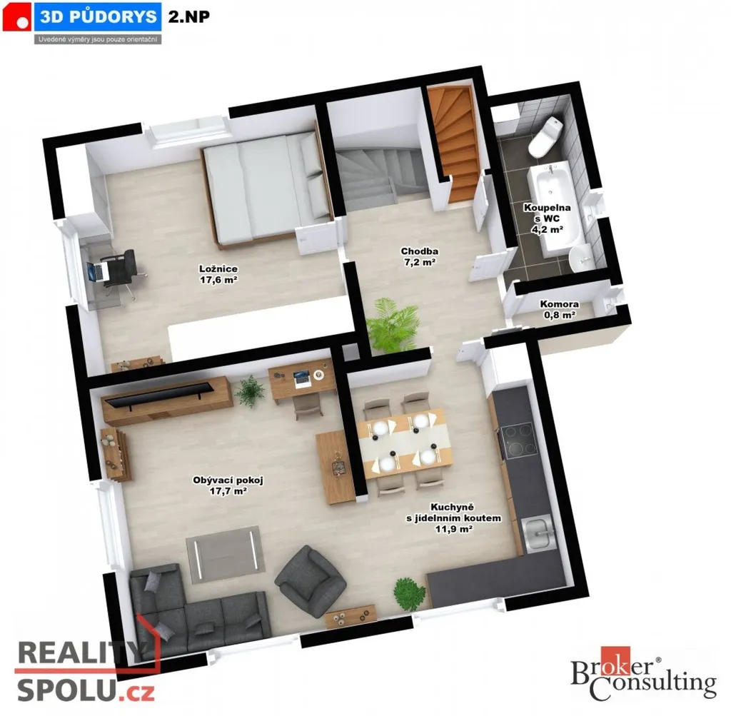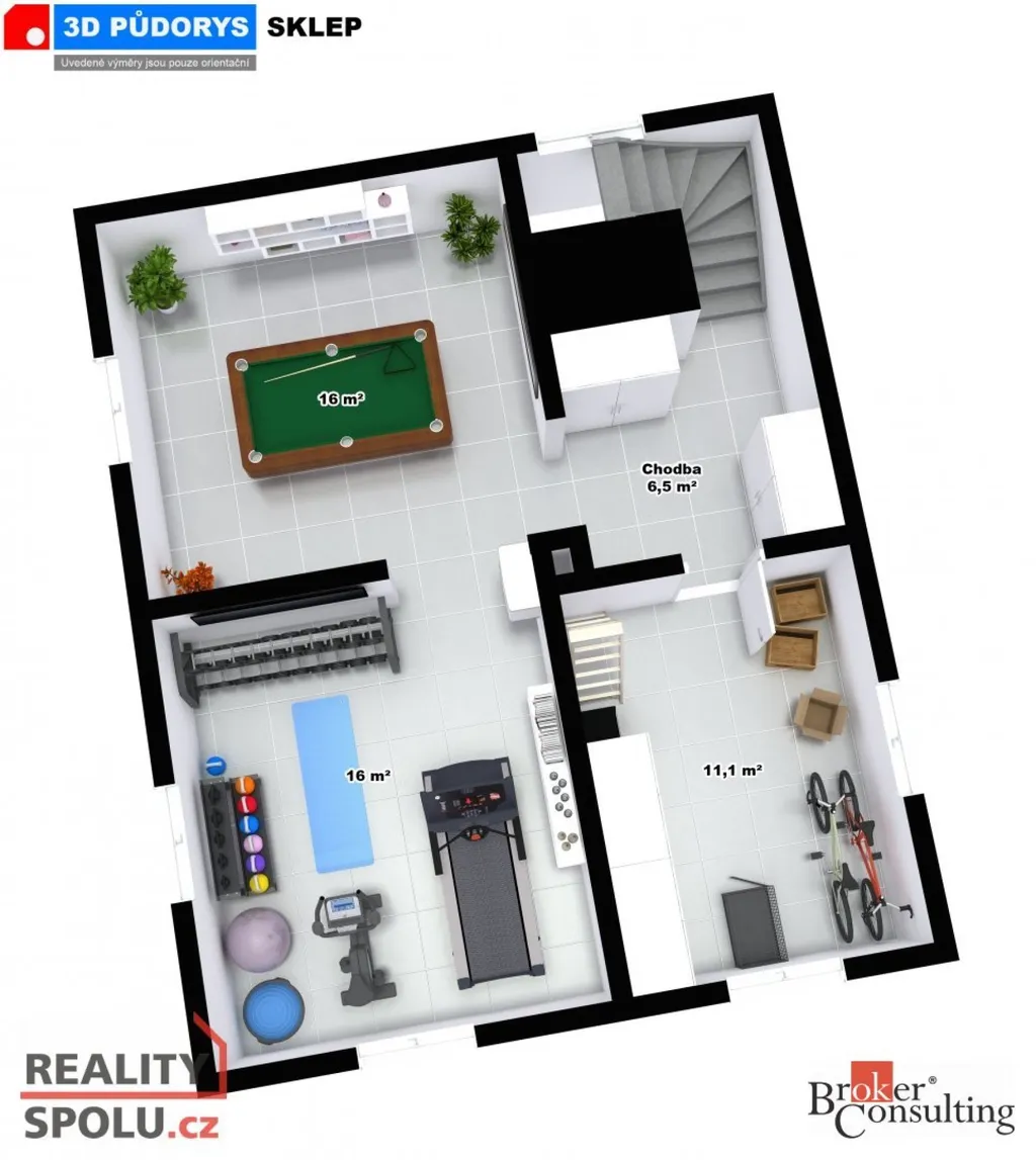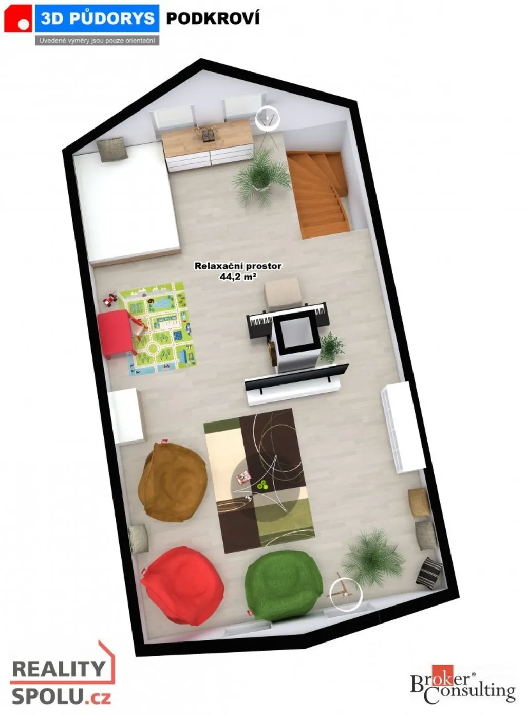 • dvě obytná podlaží + zateplené podkroví (cca 57 m²) připravené k dalšímu využití