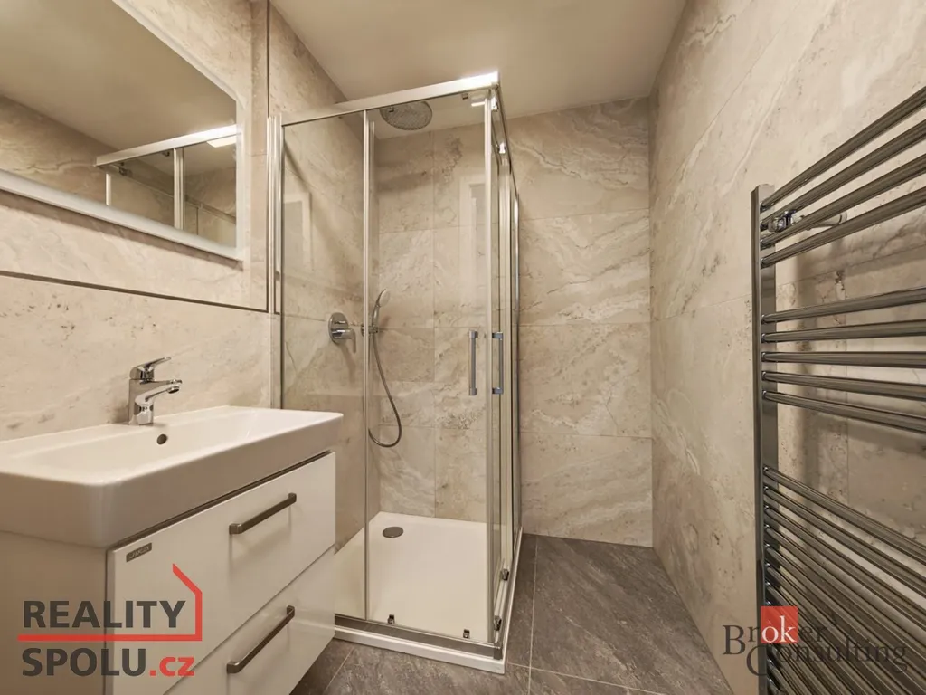 Byt se nachází v prvním nadzemním podlaží v cihlovém domě s výtahem k nastěhování ihned. Vstupní chodbou se projde do obývacího pokoje s kuchyňskou linkou a do ložnice. S chodbou přímo sousedí koupelna, která je vybavená sprchovým koutem, umyvadlem a samostatnou toaletou. Vytápění a ohřev vody je řešen dálkově.