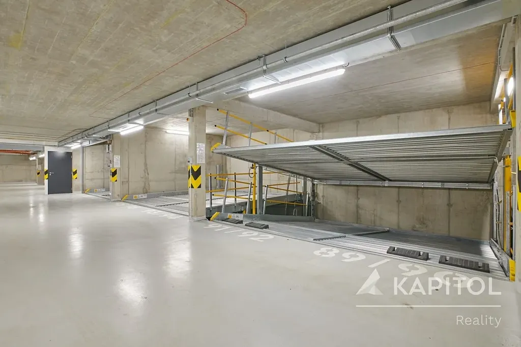 Parkovací stání formou zakladače v 1. podzemním podlaží budovy (s určitými specifiky na velikost vozidla).