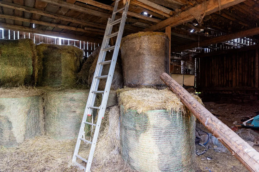 A co dalšího tu najdete? Je tu samostatná stodola na skladování sena a dalších věcí, přístřešek, voliéry pro ptáky, oplocení a ohradníky pro zvířata, domky pro zvířata. Dokonce je tu položený štěrkový základ ve tvaru kruhu pro výstavbu teepee. (Nechci vám vnucovat myšlenky, ale glampingové podnikání je v kurzu.)