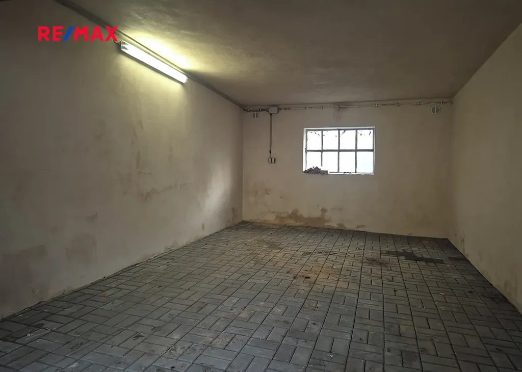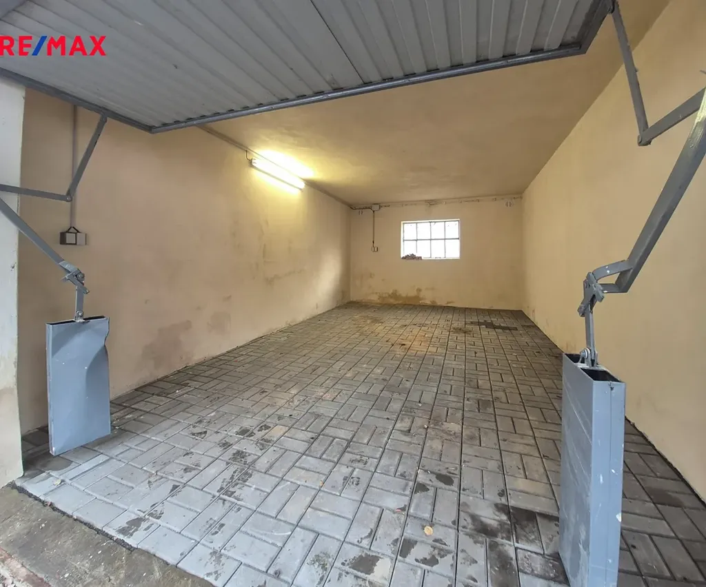 Garáž je v dobrém technickém stavu, má plechová výklopná vrata. V garáži je nová elektřina a podlaha s betonové dlažby. Celková plocha stavební parcely (pozemku) je 36 m2.