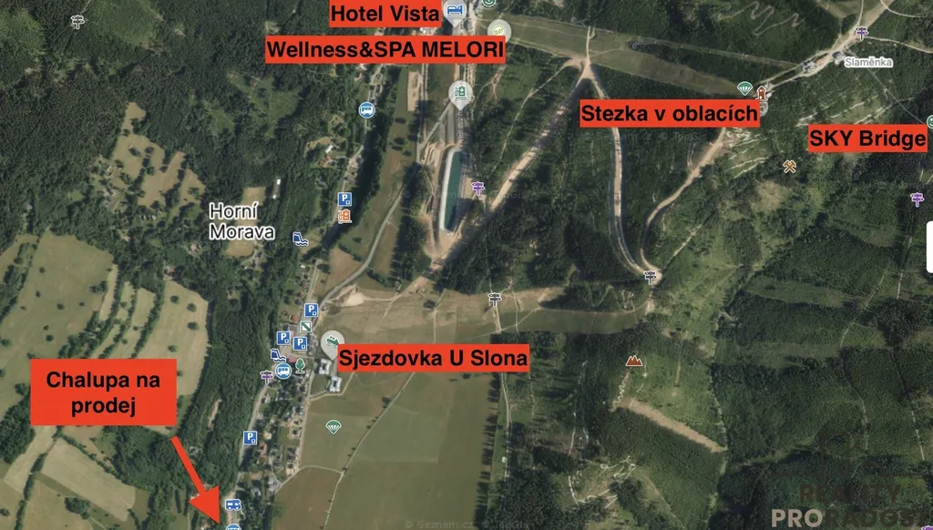 • Lyžařské areály, turistika, cyklotrasy a atrakce v okolí