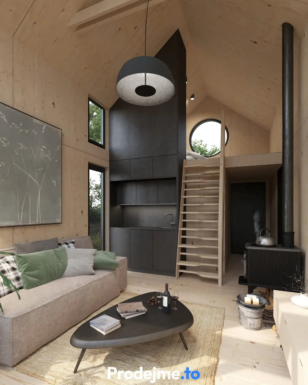 Loft 1+kk z masivního dřeva je promyšlený do posledního detailu a okouzlí vás moderním designem a přirozeným kontaktem s přírodou. Díky světlému interiéru, vysokému stropu a velkoformátovým oknům působí prostor otevřeně, vzdušně a přitom útulně.