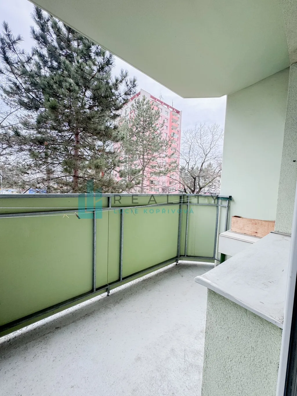 Samotný byt má plastová okna, podlahovou plochu 31m2, balkón 2m2, sklep a na patře, přímo naproti bytu, další prostor v podobě komory o velikosti 2m2.