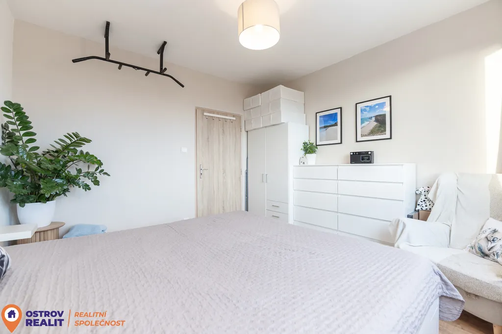 Velkým benefitem bytu je zasklená lodžie a také dostatek úložných prostor – na chodbě se nachází prostorná šatní skříň a dále komora, která je umístěna v mezipatře, takže se nemusíte potýkat s nedostatkem místa pro uskladnění sezónních věcí či domácího vybavení.