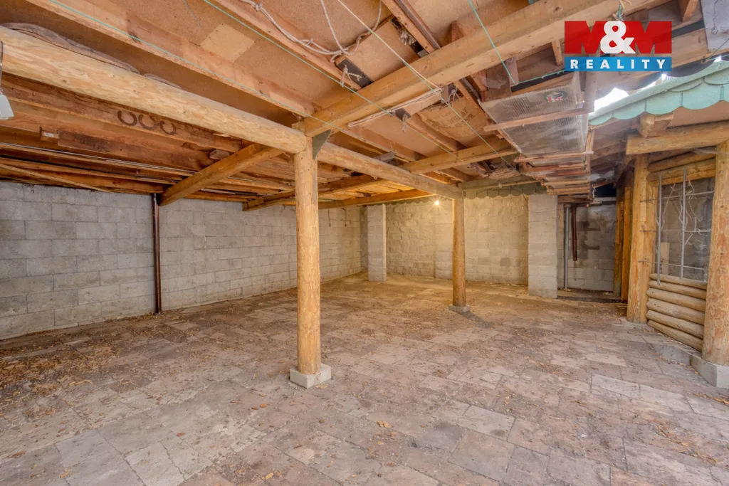 Užitná plocha 324 m². Vytápění plynovým kotlem nebo krbovými kamny. Součástí je prádelna a stylová vinárna. Parkování: garáž, jedno kryté a jedno venkovní stání.