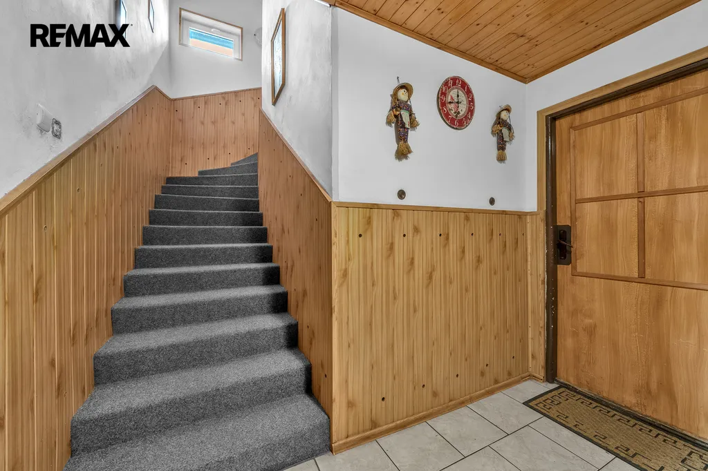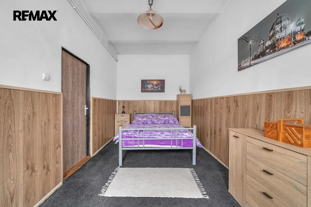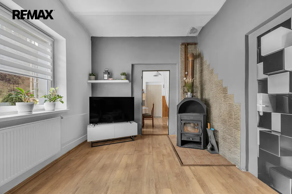 Přízemí: vstupní chodba - možnost vstoupit do technické místnosti s elektrickým kotlem na peletky nebo možno vystoupat do 1. patra nebo možno vstoupit do jídelny. Menší kuchyně se spotřebiči. Koupelna s vanou a toaletou. Obývací pokoj a ložnice. V 1. patře na Vás čekají 2 obytné místnosti, koupelna se sprchovým koutem a toaletou, podkrovní místnosti s charakterem úložných prostor.