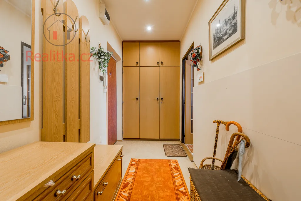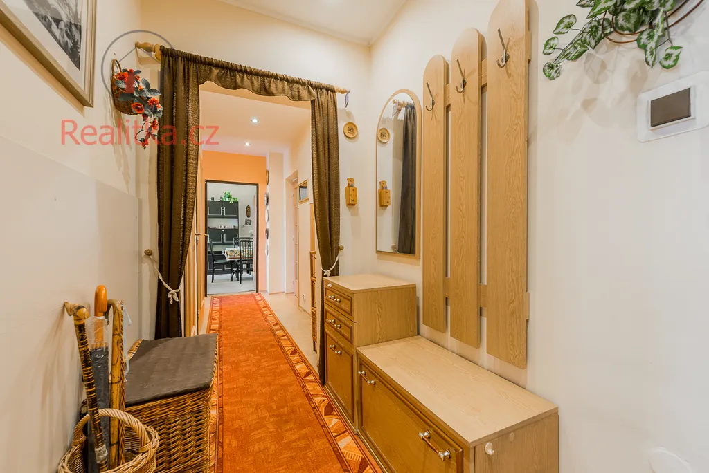 Byt má výbornou dispozici s orientací na dvě světové strany a nabízí dostatek prostoru. Před lety prošel částečnou rekonstrukcí – v rámci ní byly provedeny nové rozvody elektřiny v chodbě, koupelně, WC a v kuchyni, přičemž v pokojích jsou rozvody původní a nabízejí se k dokončení dle vlastních představ nového majitele. Dále bylo vybudováno nové zděné jádro s koupelnou a samostatným WC. Kuchyně je samostatná s původní kuchyňskou linkou a praktickým špajzem, který poskytuje dostatek úložného prostoru pro potraviny a kuchyňské potřeby. Součástí kuchyně je vstup na lodžii, což zajišťuje příjemný přísun denního světla. Dominantou bytu je prostorný obývací pokoj se vstupem na zasklenou lodžii. K dispozici jsou dále dvě samostatné ložnice, z nichž jedna má rovněž přístup na lodžii. V chodbě a ve dvou pokojích se nacházejí původní vestavěné skříně, které nabízejí praktické úložné prostory. Uprostřed dispozice bytu je komora, která slouží jako další vítaný úložný prostor. K bytu náleží dva sklepy v suterénu domu.