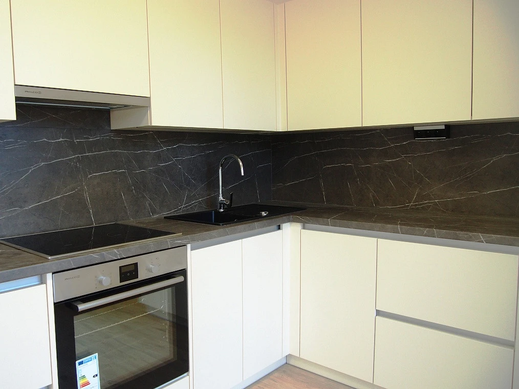 Dispozice bytu: obývací pokoj s částečně odděleným kuchyňským koutem (27 m²) - čtyři velká okna včetně balkonu (4 m²), neprůchozí ložnice (13 m²), koupelna se zděným sprchovým koutem a skleněnou zástěnou; malé okno, koupelnový nábytek, zrcadlo, přípojka na pračku 600 mm (velikost 5 m²) - podlahové vytápění, samostatné WC + umývátko, prostorná vstupní hala - předsíň (9 m²) - součástí vestavěné skříně a věšáková stěna. Součástí je prakticky řešená rohová kuchyňská linka v moderním bílo-šedém designu - vybavena indukční sklokeramickou varnou deskou, elektrickou horkovzdušnou troubou, digestoří, myčkou - vyšší standard, max. úložný systém. Venkovní - zatemňovací rolety ve všech oknech na dálkové ovládání, vkusné stropní osvětlení - dálkový ovladač, jednotný světlý odstín podlah v designu dřevo, kvalitní plastová okna (protihluk), dva výtahy v domě, dálkové vytápění. Nechybí ani bezpečná a velká sklepní kóje v suterénu domu. Slunná orientace bytu na jihozápad - vyšší podlaží je naprostou výhodou městského bydlení.