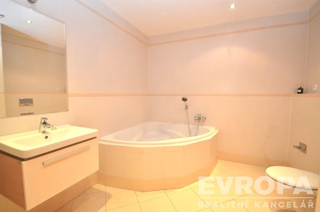 Nabízíme Vám bydlení v komplexu City Tower, u Velké ohrady, Praha 5. Pronájem krásného, částečně zařízeného bytu dispozice 2+kk o celkové obytné ploše 57,5 m2. Byt se skládá ze vstupní předsíně s velkou vestavěnou skříní, vstup do prostorného obývacího pokoje, s kuchyňským koutem, na míru vestavěná kuchyň. linka včetně el. spotřebičů (linka, skl. sporák, lednice s mrazákem, myčka a mikrovlnka). a samostatná neprůchozí ložnice. Plovoucí dřevěné podlahy, dlažba v koupelně, která je vybavena rohovou vanou a toaletou. V bytě je dále praktická komora. K dispozici možnost kabel. tv a vysokorychlostní internet, okna jsou vybavena žaluziemi, orientace oken J/Z, příjemný slunný byt, s krásným výhledem v 10 NP. Výborná dopravní dostupnost metro, bus, obchod Lidl přímo u domu. Součástí pronájmu je také garážové stání pro jedno auto a sklep. Výborné dopravní spojení dostupnost autem na Pražský okruh, D5 a letiště. Pro sportovní nadšence je nedaleko vstup do Prokopského a Dalejského údolí. K nastěhování volný ihned, prohlídky po dohodě s makléřem. Doporučujeme.