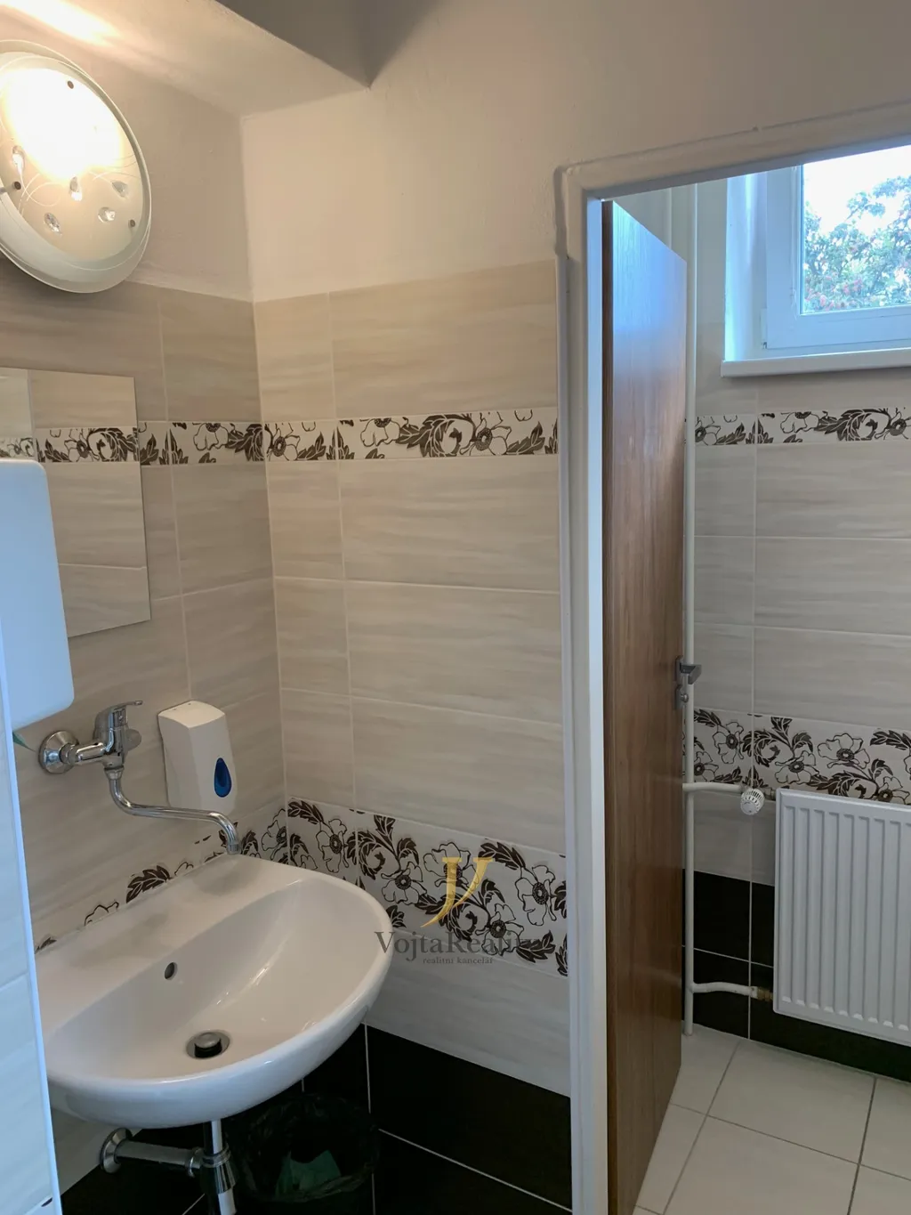 Prostor je přístupný ze společné chodby. Součástí pronájmu je možnost využití sociálního zařízení a kuchyňky umístěné na patře. Kancelář se pronajímá nezařízená.