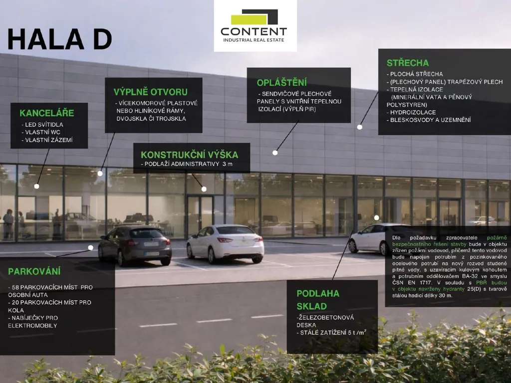 - nové vytápěné jednopodlažní samostatné skladové haly ze železobetonového skeletu