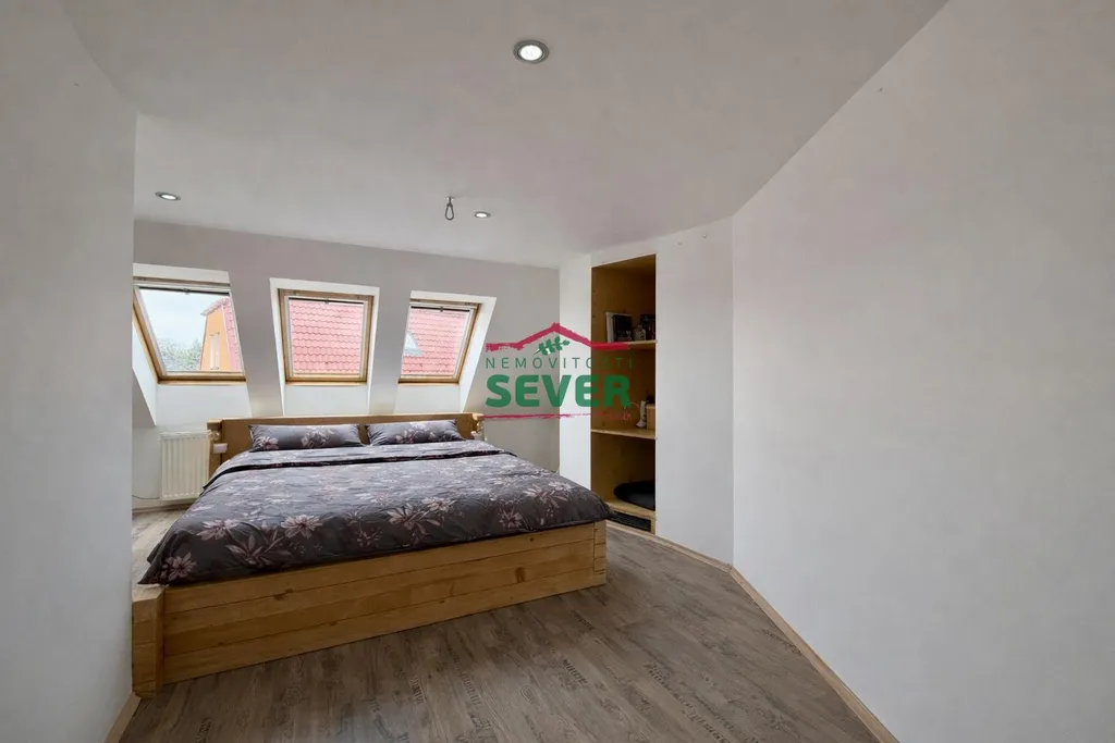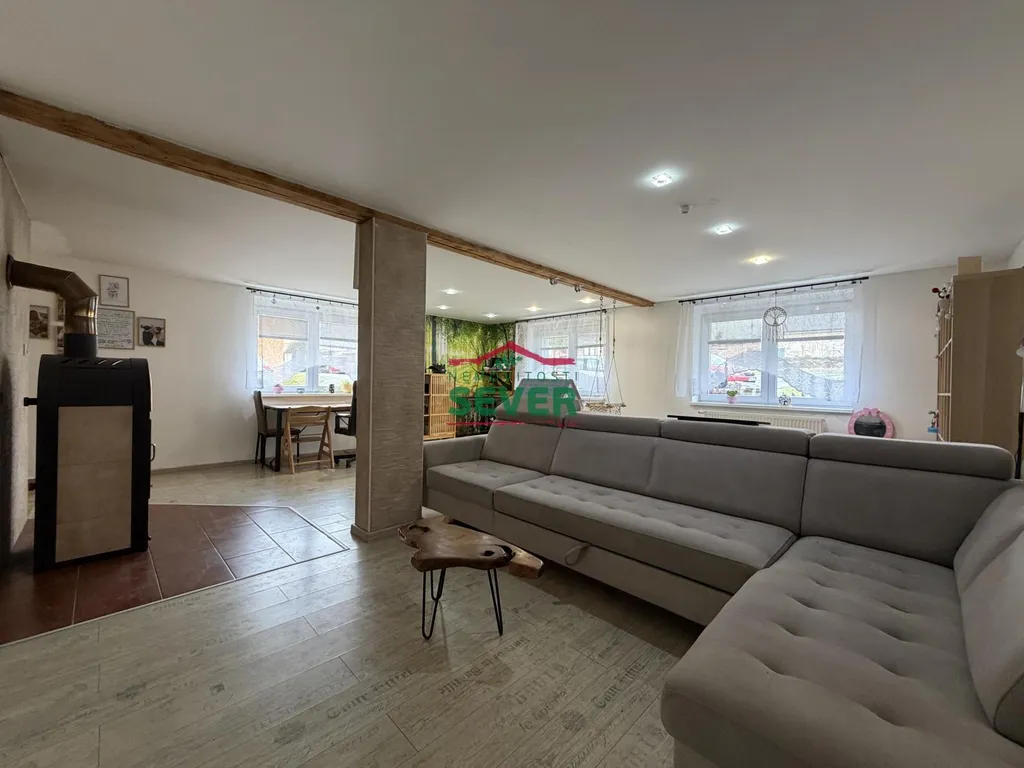 Nemovitosti SEVER Vám zprostředkují koupi patrového rodinného domu v obci Hrušovany, okres Chomutov. Dům, o zastavěné ploše 104 m2, prošel kompletní rekonstrukcí a je připraven k okamžitému nastěhování bez nutnosti dalších investic. Dispozice domu nabízí komfortní rodinné bydlení - dvě koupelny, samostatnou toaletu, ložnici, prostorný dětský pokoj s možností přepažení na dva samostatné pokoje, obývací pokoj, kuchyni a prádelnu. Dům je částečně podsklepený. V rámci rekonstrukce byly kompletně vyměněny rozvody elektřiny a vody. Vytápění zajišťuje plynový kotel v kombinaci s krbovými kamny, ohřev vody je řešen elektrickým bojlerem. Nemovitost je napojena na veřejnou kanalizaci. Na dům navazuje stodola s dílnou, kterou lze díky vjezdu přímo ze silnice využít jako parkovací stání. Na zahradě o výměře 793 m2 se dále nachází kaskádovité záhony, zahradní domek a terasa. Součástí koupě je také zahrada, o výměře 319 m2, nacházející se přes komunikaci a je aktuálně pronajímána. Veškerou občanskou vybavenost nalezneme v nedalekém městě Chomutov. V případě zájmu zajistíme optimální variantu financování pro naše klienty.