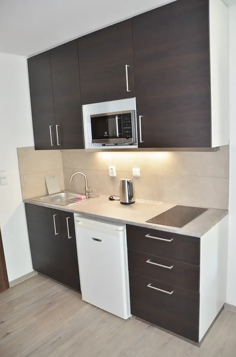Nabízíme k pronájmu k bydlení kompletně zrekonstruované tzv.studio o velikosti garsoniéry (25m2) v Praze 4 Hájích v Tatarkově ulici v těsné blízkosti metra C stanice Háje. Nabízený prostor k bydlení je situován v přízemí domu s plochou 25 m2. Je kompletně zařízen nábytkem včetně spotřebičů sklokeramická varná deska, nová lednice, mikrovlnná trouba, rychlovarná konvice (lze dodat i pračku). Byt má na oknech mříže a bezpečnostní izolační sklo. Orientace jiho-západ. Majitel požaduje 1 osobu, vhodné i pro kancelář. Ostatní požadavky majitele sdělíme po kontaktu. K nastěhování od 1.5.2026, prohlídky dle dohody.
