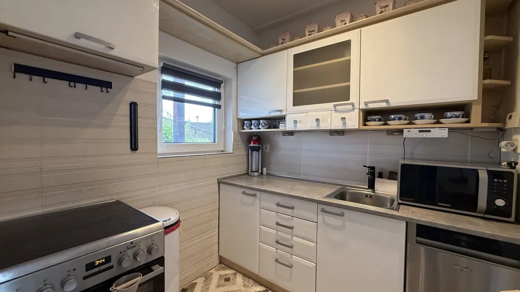 V přízemí domu se nachází prostorná předsíň, která zajišťuje pohodlný vstup do obytné části. Dále je zde kuchyně s jídelnou, která plynule navazuje na obývací pokoj. Z kuchyně je přímý vstup na zahradu, což oceníte zejména při každodenním provozu i při posezení s rodinou či přáteli.