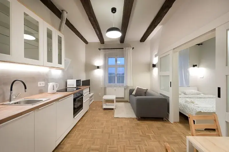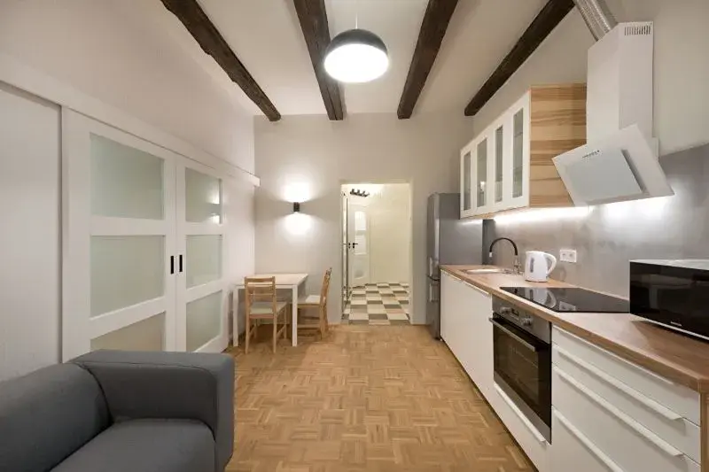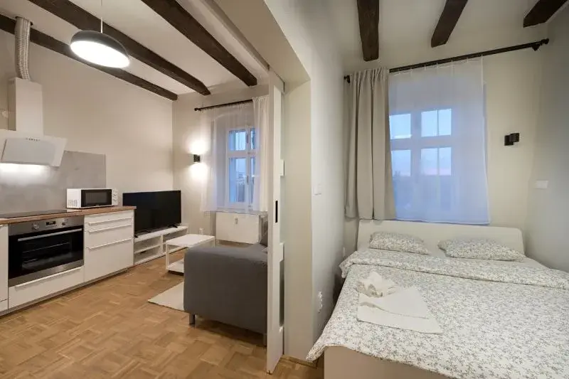 1358 Pronájem kompletně zrekonstruovaného zděného bytu 2+kk v Jihlavě, ul. Havířská. Byt o výměře 40 m2 se nachází ve 3.NP kompletně zrekonstruovaného historického domu na hradbách města. Byt je plně zařízen. (videotelefon, systém generálního klíče, pračka se sušičkou, myčka, internet atd.). K domu přináleží dvorek orientovaný k jihu s možností posezení a relaxace. Volný od 1. 4. 2026.