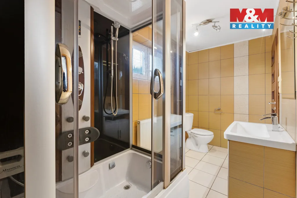 K prodeji nízkoenergetická zděná novostavba o dispozici 7+kk kolaudovaná v r. 2019. Součástí prodeje je další zděná stavba na pozemku bez č.p/č.ev o dispozici 3+kk, která byla kolaudovaná v r. 2009. Hlavní stavba je napojena na IS: plyn, elektřina, veřejný vodovod a veřejná kanalizace. Na pozemku pak studna kopaná, na střeše fotovoltaika na ohřev vody. V celém domě vytápění podlahou. V 1. NP se nachází zádveří s vestavěnou skříní, obývací místnost s krbem a vstupem na zahradu, kuchyň s kuch. linkou + vestavěné spotřebiče, 2 pokoje, koupelna se sprchovým koutem, toaleta, komora, garáž. Ve 2. NP jsou 4 pokoje, 2 koupelny, tech. místnost, 2 toalety. Druhou stavbu je možno vytápět krbovými kamny s výměníkem nebo elektrickým kotlem. V 1. NP krytá pergola s krbem, který slouží také jako udírna a pec na pizzu. Vstupní chodba, obývací místnost s kuch. koutem, koupelna s toaletou, schodiště a garáž. Ve 2. NP 2 pokoje, toaleta a úložný prostor. Na zahradě bazén, skleník. V blízkosti Český kras.