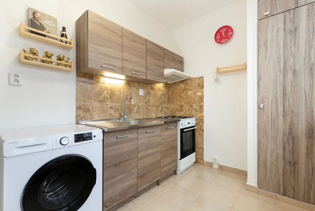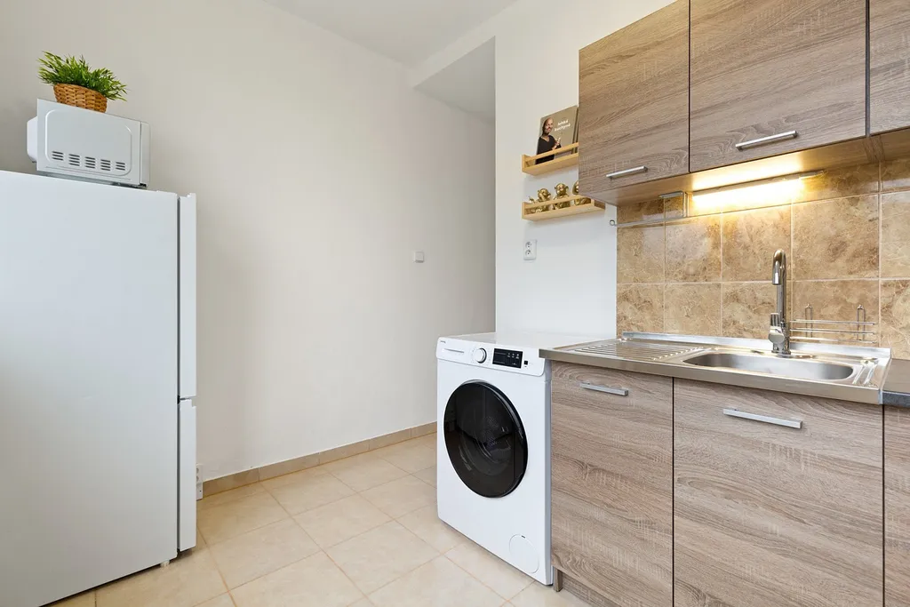 Nespornou výhodou tohoto bytu je jeho kompletní vybavenost, takže stačí pouze osobní věci a můžete ihned plnohodnotně bydlet.