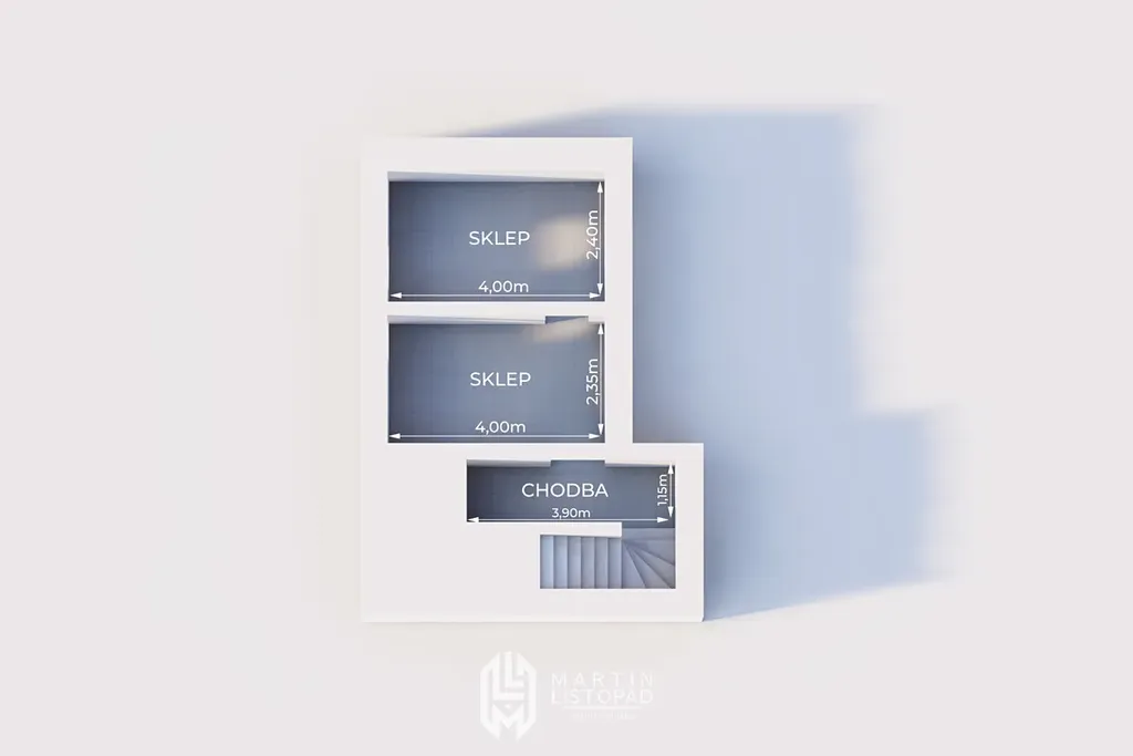 kuchyni, druhou chodbu se schodištěm, samostatné WC, šatnu a dva neprůchozí pokoje. 2. nadzemní podlaží nabízí obdobnou dispozici 2+1, tvoří jej chodba se