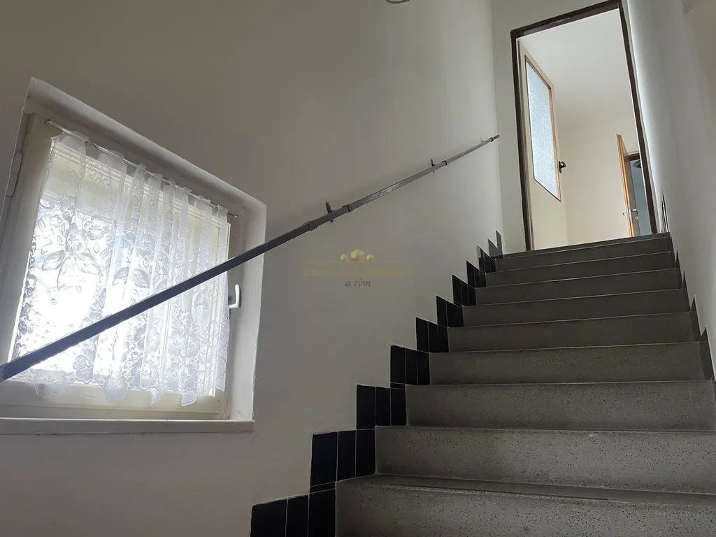- Obytné místnosti mají původní dřevěné podlahy, na chodbách a v koupelně a WC je dlažba.