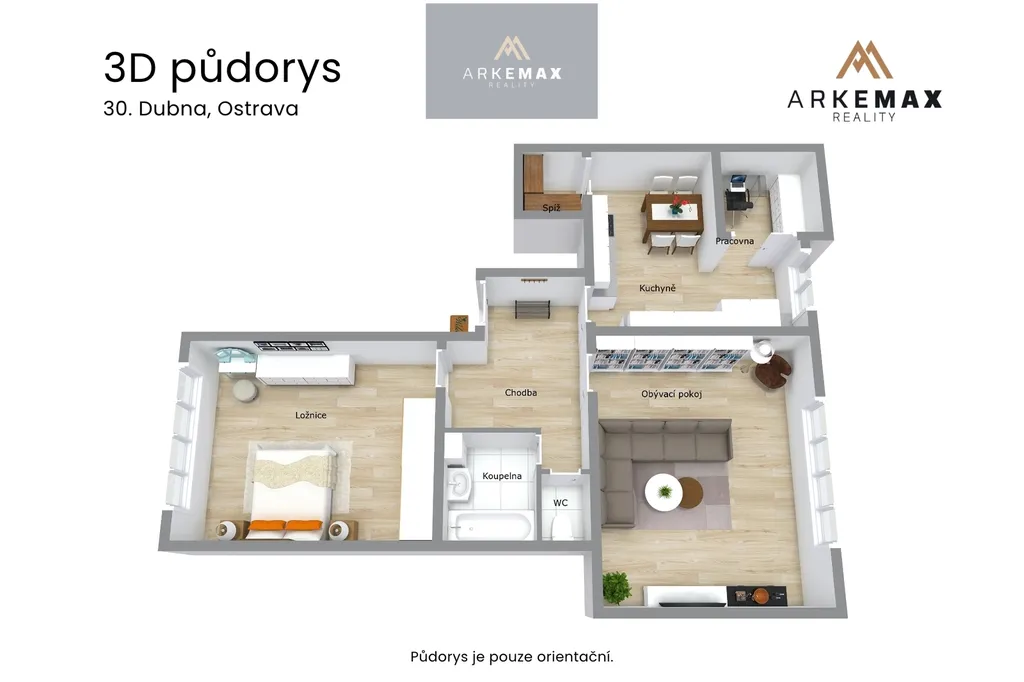 Nabízíme k prodeji velkorysý byt o celkové ploše 80,6 m² (včetně sklepa 4,2 m²), situovaný v 5. nadzemním podlaží domu s výtahem na ulici 30. dubna v samotném centru Ostravy.