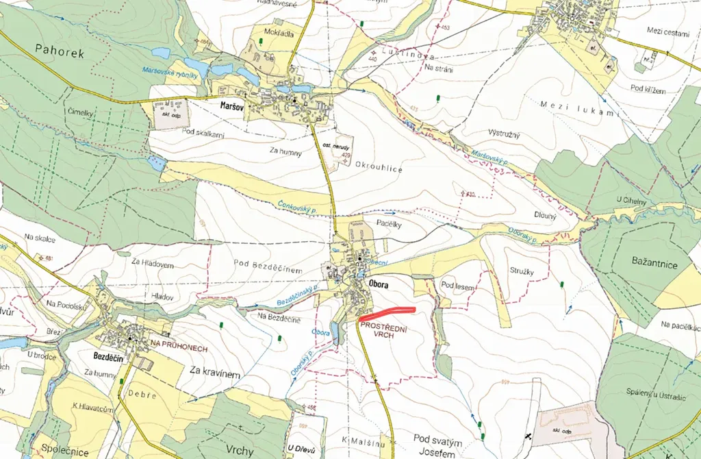 Na katastru nemovitostí je pozemek zapsán pod číslem parc. 890 na listu vlastnictví 229 v KÚ Obora u Maršova.