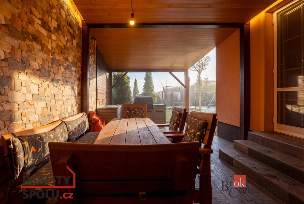 Velkou předností je prostorná zahrada, která nabízí ideální místo pro dětské hry, relaxaci i setkávání s blízkými. Posezení pod pergolou s letní kuchyní vybízí k dlouhým večerům venku, ranní kávě na čerstvém vzduchu i víkendovému grilování v soukromí vlastního pozemku.