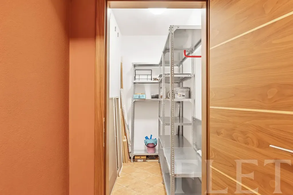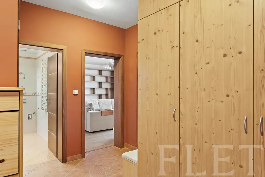 Při vstupu do bytu vás uvítá prostorná chodba, ze které se dále dostanete do všech obytných místností. Ve velkém vybaveném obývacím pokoji, odkud se dostanete i na balkón, na vás čeká pohodlný gauč a nábytková stěna. Součástí tohoto pokoje je také plně vybavený kuchyňský kout a jídelní stůl. Ložnice s vestavnými skříněmi i druhý pokoj, který může sloužit jako dětský, jsou neprůchozí. Přímo v bytě je komora, takže nemusíte pro zavařeniny běhat do sklepa. Koupelna je s vanou a toaleta oddělená. Ani s parkováním si lámat hlavu nemusíte, jelikož k bytu náleží parkovací stání.