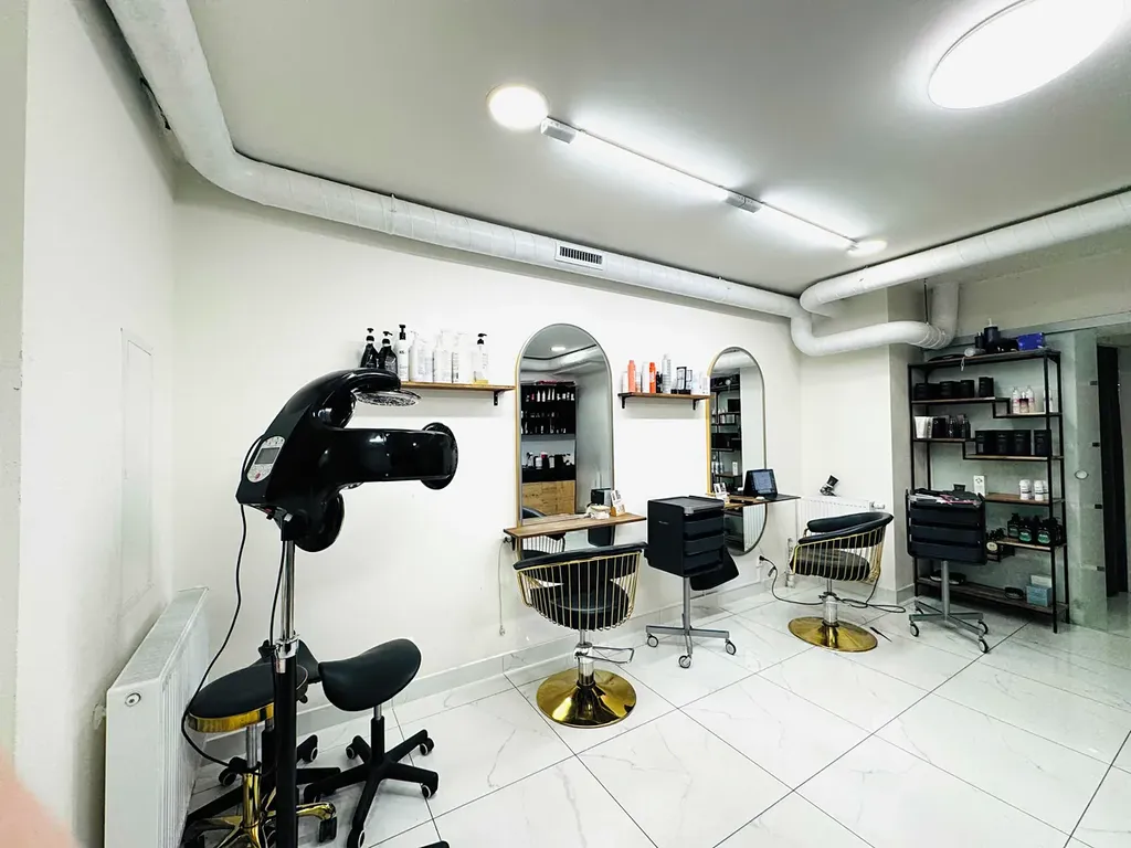 Prostor je rozdělen do dvou podlaží. V přízemí se nachází kompletně vybavený kadeřnický provoz, v prvním patře plně zařízená kosmetická část. Součástí salonu jsou dvě samostatné toalety (pro klienty a personál) a zázemí pro zaměstnance. Prostor splňuje veškeré hygienické a provozní normy pro poskytování kosmetických a kadeřnických služeb.
