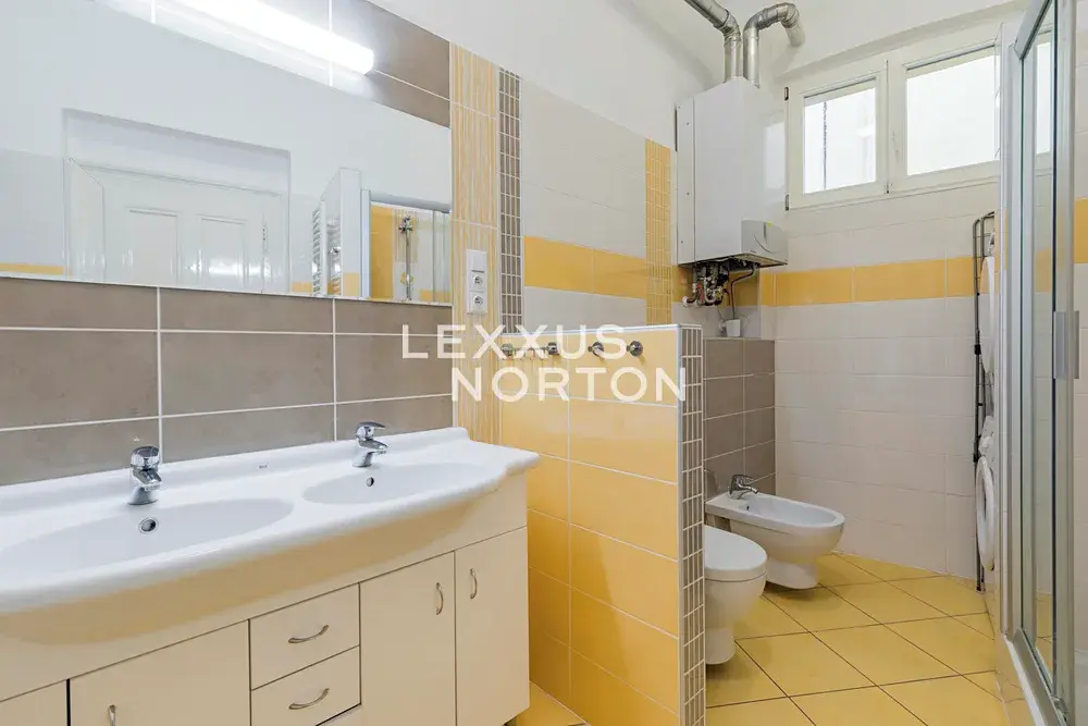 Zařízený byt 4+kk o velikosti 144 m2 se nachází ve 4. nadzemním podlaží zrekonstruované rezidenční budovy a skládá se z prostorné vstupní chodby, obývacího pokoje s krbem, plně zařízeným kuchyňským koutem a jídelním prostorem. Byt dále nabízí tři ložnice, koupelnu, samostatnou toaletu a komoru.