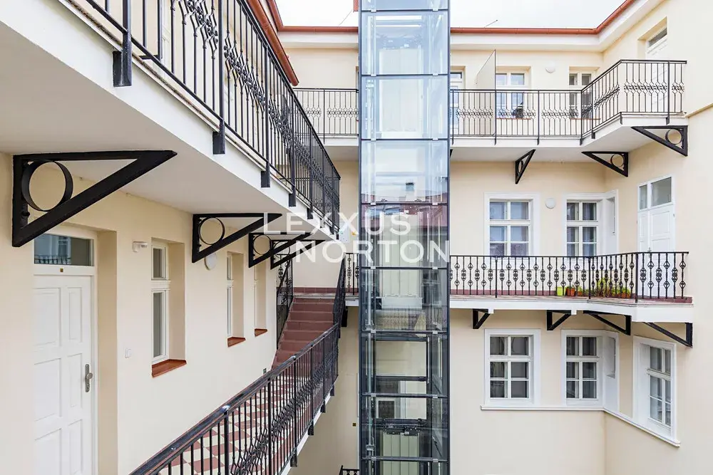 Moderně zařízený byt 4+kk k pronájmu se nachází ve 4. nadzemním podlaží nově zrekonstruované rezidenční budovy, která se nachází v centru Prahy. Uzavřený bytový komplex nabízí vysoký standard a atraktivní lokalita zajišťuje veškerou občanskou vybavenost a skvělou dopravní dostupnost.